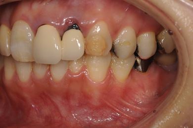 治療内容 インプラント1本、メタルボンドセラミッククラウン2本、GBR
