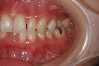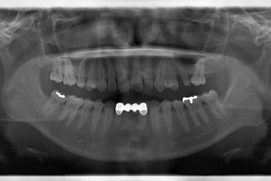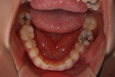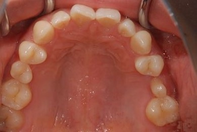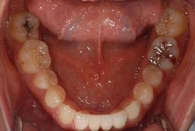 | 治療方針 | 下顎前歯、乳歯を抜歯し、セラミック治療にて審美的回復を行う。 | ||||||||||||||||||||||||||||||||
