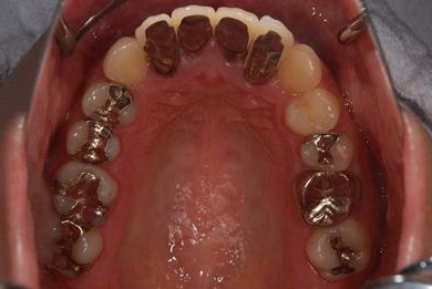 治療内容 オールセラミッククラウン4本(オールセラミック用土台4本)、歯肉歯槽骨整形手術
