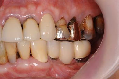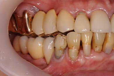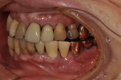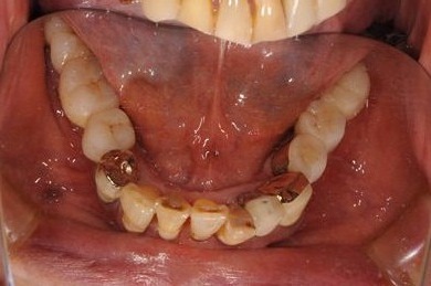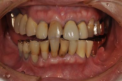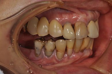 | 主訴 | 20年前に入れたインプラントの周囲が腫れて気になっている。左下の一部治療後の歯が欠けている。 | ||||||||||||||||||||||||||||||||