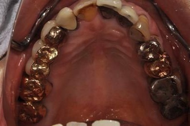 | 治療内容 | インプラント5本(抜歯即日スピードインプラント)、ハイブリッドセラミック9本(セラミック用土台2本)、メタルボンドセラミック2本(メタルボンド用土台1本)、インプラント除去1本 | ||||||||||||||||||||||||||||||||