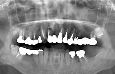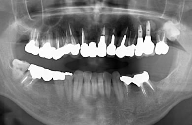 | 治療方針 | ソケットリフト法により上顎洞底部を挙上することにより、骨の無い部分に骨をつくってあげ、インプラント治療を可能にする。 | ||||||||||||||||||||||||||||||||