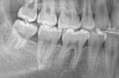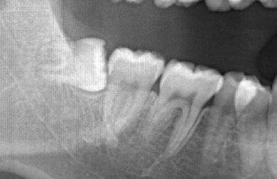 治療方針 歯のがたつきが大きいことより上下左右第一小臼歯を抜歯して、マルチブラケット装置にて治療。また、親不知がまっすぐ生えることができず横を向いている状態なので、まっすぐにする隙間があることから親不知も使用し、矯正を行う。