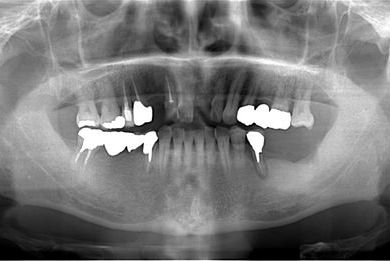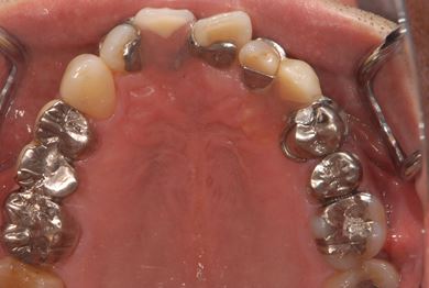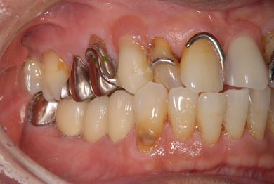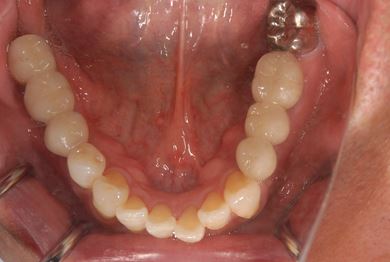 治療内容 インプラント5本(抜歯即日スピードインプラント、テンポラリーインプラント)、メタルボンドセラミッククラウン5本
