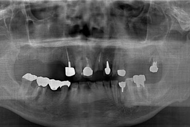 | 治療内容 | インプラント8本(GBR、ソケットリフト)、ハイブリッドセラミッククラウン17本(セラミック用土台5本) | ||||||||||||||||||||||||||||||||