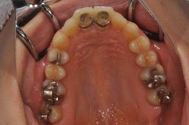 | 治療方針 | 上顎前歯、抜歯と同時にインプラントを埋入し、治療期間を短縮する。 | ||||||||||||||||||||||||||||||||